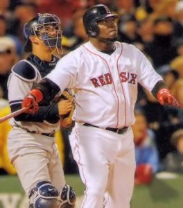 May 1, 2006 ... Mike Myers had faced David Ortiz just twice (0 for 2) before their eighth-inning encounter tonight, when the Red Sox' impregnable DH came to bat with his team ahead of the Yankees by one run and two runners aboard. When Ortiz dug in on this cold (46 degrees) and windy (16 miles per hour, blowing in) evening, the Sox and Yankees had combined for seven runs on 13 hits, all of them singles. The count went to 3-and- 2. But of all of the mystic elements at play, none were greater than Ortiz's bat. With a thunderous swing, he launched the ball into the Boston night, not to come down until it landed in the glove of Jonathan Papelbon, who was warming up in the bullpen. Papelbon hurled it halfway up the bleachers, a proper exclamation point to a 7-3 Sox win before 36,339 in the first of 19 regular- season meetings between these teams. It was an exhausting day and game, emotionally more than physically. At 3:30 p.m., a lineup was posted with Doug Mirabelli, acquired yesterday from the Padres, catching. By 3:45, Jason Varitek's name was in the lineup instead. Mirabelli's charter landed at Logan at 6:48, and his police escort arrived at the ballpark at 7, giving Mirabelli 12 minutes to collect his thoughts and get into uniform. At 7:01, a lineup change was announced. Mirabelli would start and bat eighth. Varitek, meanwhile, had been warming up Tim Wakefield in the bullpen. General manager Theo Epstein had said the first pitch would be at 7:09 p.m. Somehow, it wasn't tossed until 7:13, and that wasn't because the game was on ESPN. (A high-ranking ESPN employee was wondering himself why the game didn't begin on time.) At about 7:12, Mirabelli was behind the plate, catching Wakefield offerings. Two skipped away in warmups.