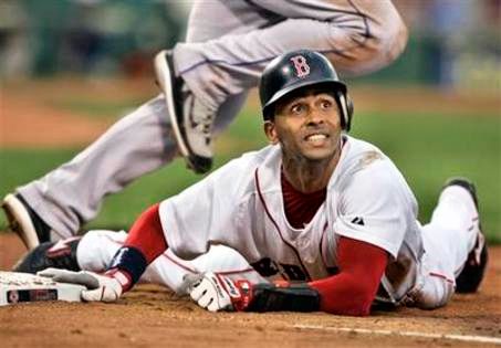 head of Wily Mo Pena, whose first step in gave him no chance for a play, said