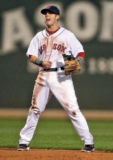 Manny Ramirez (No. 13), and a two-run home run by David Ortiz (after a Pedroia