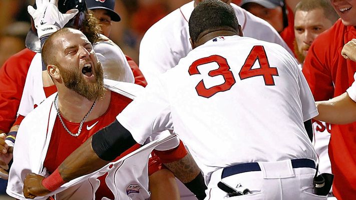 BOSTON STRONG - July 21, 2013 ... Mike Napoli came to the plate in the eighth inning on with a chance to be the hero. The Red Sox had the bases loaded with one out in a tie game with the Yankees. Napoli grounded into a double play and extra innings followed. When Napoli came to the plate again, this time on Monday morning, he didn't miss his second opportunity. Napoli belted a home run to straightaway center field in the 11th inning to end a wild night at Fenway Park as the Red Sox beat the Yankees, 8-7. He was mobbed by his teammates at home plate after ending the thrilling victory over the Yankees. At that joyous moment for the Red Sox, it hardly mattered at all that Napoli had struck out three times. All that was relevant was the sheer force Napoli put into that solo rocket of a walk-off homer against Yankees reliever Adam Warren that landed in the bleachers in straightaway center. By the time Napoli reached home, the strong-armed David Ortiz had ripped the first baseman's jersey open. Earlier in the night, Napoli hit a towering blast that soared over the Green Monster and onto the street to turn a 3-1 Yankees lead into a 4-3 edge for Boston. On this evening, Napoli produced more power than he did between June 2 and July 5, when he went deep just once. Through their first 100 games, the Red Sox have 60 wins, nine of which have come via a walk-off hit. The first two innings were ugly as Ryan Dempster threw 50 pitches, the Sox committed two errors, and the Yankees built a 3-0 lead. The game lasted four hours and 46 minutes and had multiple personalities. By the time the Yankees overcame a four-run deficit, it was a 7-7 game entering the bottom of the seventh. From there, it evolved into a fierce bullpen duel in which the Yankees never went to Mariano Rivera, instead holding him out for a save situation that never came. And the Red Sox, who are without Andrew Bailey and Andrew Miller for the rest of the season, utilized two relievers at the end of the game who have spent most of the season in the Minors. Lefty Drake Britton worked a scoreless 10th, working around a hit and a walk. Righty Pedro Beato, the sixth Red Sox reliever, got the win by keeping the Yankees off the board in the 11th. Beato, a native New Yorker, won his second game with the Sox. The Red Sox bullpen threw 5 2/3 innings, allowing one earned run. Dempster recovered from a shaky opening and left with a 7-4 lead. Over 5 1/3 innings, Dempster give up six hits and five runs, just three of which were earned. Thought it was hardly his best performance, Dempster did outpitch C.C. Sabathia, who continued a strangely mediocre season by giving up nine hits and seven runs over five-plus innings. After Jonny Gomes put Boston up, 7-3, with a solo homer in the fifth, the Yankees climbed back into it in the sixth. Brett Gardner came up with an RBI single that knocked Dempster out of the game. On came lefty Craig Breslow, who was greeted with a line-drive single to center by Ichiro Suzuki, then an RBI single to left by Robinson Cano that slimmed Boston's edge to 7-5. But Breslow made the pitch he needed, getting an inning-ending double play off the bat of Lyle Overbay. Eventually, New York did climb all the way back. With two on and one out in the seventh, Junichi Tazawa came on for Breslow. Chris Stewart dropped down a bunt, and third baseman Jose Iglesias committed the third error of the night for Boston, making a wild throw to first. That allowed a run to score, slimming the deficit to a run. Luis Cruz tied it up with a fielder's-choice grounder. Ultimately, a hard-fought battle came down to a huge swing by Napoli. The Sox are 6-3 against the Yankees this season. Jose Iglesias went 1 for 5 in the Red Sox' 8-7 11-inning victory Sunday, extending his slump to 10 for 50. Shane Victorino was back in the lineup after missing Saturday's game with a sore left hamstring, an issue that has dogged him for weeks. He went 2 for 5, hitting a two-run single in the fourth. |