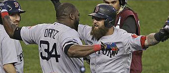 BOSTON STRONG - October 14, 2013 ... No game scheduled. October 15, 2013 ... The Red Sox are managing the stress of this exhilarating American League Championship Series by somehow finding a way to be in front through the first three games. Game 3 was, just like its two predecessors, a heart-stopper. John Lackey is the poster boy for Team Redemption. Nobody was more loathed coming into this season. Lackey got blamed for chicken and beer. He got blamed for Theo Epstein's bloated payroll. He was blamed for the collapse of 2011. He's snarled at the media. Fans wanted him out of town ASAP. Folks didn't like the way Lackey showed up his fielders and his manager. In 2011, Lackey had the worst season (6.41 ERA) of any Sox starter in history. It was so bad that Lackey was questioned just for being in the dugout last year. Lackey spent 2012 rehabbing from Tommy John surgery and there was chatter about why the Sox would even have him around. He was overpaid, overweight, churlish, and a bad example for the Sox' young pitchers. His five-year, $82.5 million contract, signed in December of 2009, signified the beginning of the decay of the Red Sox. Lackey was the symbol of throwing money at problems, putting TV ratings and instant gratification ahead of scouting and player development. Now everything has changed, and at Comerica Park, Lackey had his finest hour in a Red Sox uniform. He beat the Detroit Tigers, 1-0. He outpitched Justin Verlander, a former Cy Young Award winner and Most Valuable Player. Lackey allowed four hits and zero walks, fanning eight before he was lifted (against his will) by manager John Farrell with two out and one aboard in the seventh. It came down to a fierce effort by Lackey and a clutch solo homer by Mike Napoli in the top of the seventh to give the Sox a 2-1 lead in the best-of-seven series. Though this win was very much a group effort, Lackey stood out. Perceived as the underdog in a matchup with Justin Verlander, the Sox righty earned the win and his teammates loved watching him come up big in this one. Not to mention the bullpen, which was never bigger than in the eighth inning. Perhaps the most crucial at-bat of the game was when Tazawa struck out Miguel Cabrera with runners at first and third and one out. And Uehara, en route to a four-out save, snuffed out the rest of that eighth-inning threat by striking out Prince Fielder.