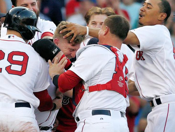 intentionally walked Stephen Drew, then Carp, pinch-hitting for David Ross, singled off Ronald Belisario. Carp took a fastball away down 1-2 in the count to Belisario, then figured the righty would try to bust him in. The next pitch, a sinker, caught too much of the plate. Carp put it through the hole to score Nava, who slid under