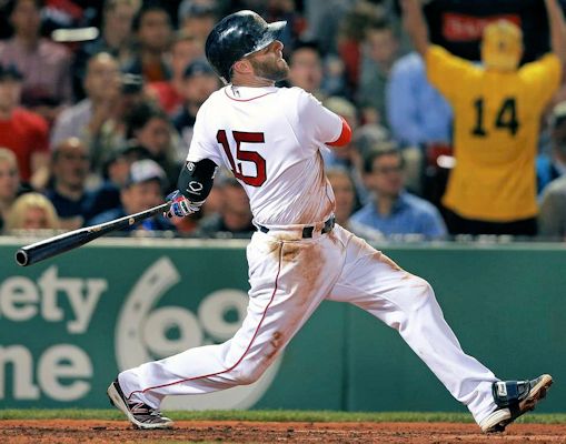 RED SOX LEGEND - April 27, 2016 ... When the fly ball that Dustin Pedroia sent floating down the right-field line in the second inning of the Red Sox' 9-4 win over the Braves started drifting closer and closer toward the foul pole, Pedroia wasn't quite sure what to make of it. The spray chart of the hits Pedroia has collected over his career looks like a Chuck Close collage. The dots are all over the place. But if you look closely enough, one thing is straightforward: If Pedroia goes deep at Fenway, he's usually going over the Monster. But the bases were loaded, and with the pole drawing Pedroia's fly like a magnet, it had a chance to be game-changing. Standing on second, Jackie Bradley Jr. couldn't help but stare. Even Pedroia caught himself gazing at it as he ran up the first base line. From the dugout, Sox manager John Farrell could hear Pedroia trying to sweet talk the ball into clipping the pole. Pedroia watched the ball until it finally ricocheted off the pole for a grand slam. By the time he rounded the bases, his teammates were dancing in the dugout. Pedroia couldn't keep his grin to himself. It was Pedroia's first opposite-field homer since 2013, just the seventh of his career, and it was the highlight of a 3-for-5, two-homer, five-RBI night for the second baseman. Pedroia's slam, along with an RBI double by David Ortiz and a run-scoring single from Hanley Ramirez, gave Steven Wright wiggle room. And as consistent as Wright has been early in the season, he didn't need much.