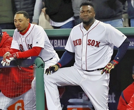 out but Mookie Betts doubled high off the wall, sending Pedroia to third. Ortiz