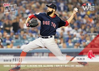 THE BEST RED SOX TEAM EVAH! ... October 28, 2018 ... The Red Sox finished things off in five games, giving them a championship. David Price was the story of this game, and though he wasn’t the only performer he’s the guy we’ll all remember. Pitching on short rest and having thrown either in-game or in the bullpen in each of the last two games, the lefty tossed an absolute gem. He outdueled Clayton Kershaw and then some, lasting seven-plus innings and allowing just one run. Throw in a pair of homers for Steve Pearce and a homer each for Mookie Betts and J.D. Martinez, and that’s a championship. Mookie Betts continued his struggles and contributed a leadoff out, Andrew Benintendi showed off strong hitting against Clayton Kershaw with a solid single through the middle the infield. That brought up Steve Pearce, and he picked up exactly where he left off and helped the Red Sox get that early lead. Kershaw left a fastball belt-high over the outer half of the plate, and Pearce got his arms extended and the bat around. He blasted a no-doubt shot out to left-center field, and three batters into the game they were holding a 2-0 lead.