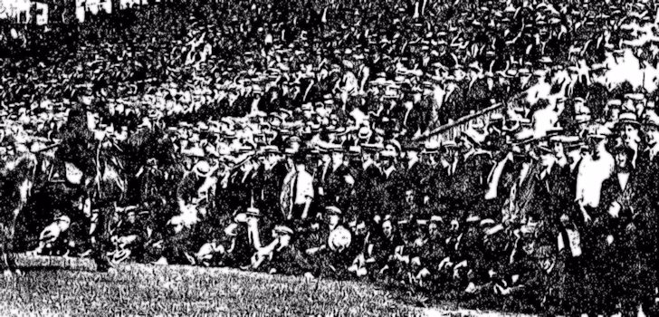 ON THIS DATE (September 7, 1914) ... Close to 75,000 fans turned out to see the two games between the Braves and the Giants at Fenway Park. About 35,000 got inside the grounds for the morning game and over 39,000 in the afternoon. In both games there were 5000 to 6000 left outside begging for someone to take their money, after the sale of the tickets had been stopped and the gates were closed. A new record for attendance was made and it will stand for quite a while. Nothing like these figures as ever been approached before. The Braves have had years when the attendance for the entire season was not greater than that of today's at Fenway. The two clubs are still in a virtual tie for first place and it remains for the final game of this series to force a deadlock, as the Braves won the first game 5 to 4 and the Giants came back in the afternoon, to take the second game 10 to 1. It was one of the most thrilling exhibitions of baseball ever witnessed in the city. It was similar in some respects to the deciding game of the World Series in 1912 between the Red Sox and the same Giants. It was Dick Rudolph and Christy Mathewson on the mound for the morning game. After the ground rules had been agreed upon, the Braves scored in the very first inning as Art Fletcher fumbled Herbie Moran's bounder. Johnny Evers moved him over to second base and he scored on a double by Joe Connolly. The Giants tied the score in the second inning when Fletcher led off with a double and came home on Eddie Grant's single. In the fourth inning the Braves got another run on Butch Schmidt's double and Red Smith's single, to make it 2 to 1 in favor of the home team. But the Giants took the lead by scoring three runs in the fifth. Grant got a second life and got on at first thanks to a low throw by Red Smith. After Fred Merkle struck out, Larry McLean got a base hit. Matty flied out to center and Snodgrass doubled into the crowd to score Grant with the tying run. Larry Doyle then drove a single to right that hit the foul line, scoring McLean and Snodgrass. That made the score 4 to 2 in favor of New York. The Giants then could only make one more hit off Rudolph for the rest of the game, and George Burns, who made it, died on base. After scoring another run in the eighth-inning, the Braves needed two runs to win the game when they came to bat in the ninth. Hank Gowdy, the first batter up, was disposed of by Mathewson and the Braves chances of being able to even tie the score seemed slimmer. Manager Stallings sent up Josh Devore, and old teammate of Matty's, knowing that he would give everything he had, to pull one over on his former team. Josh came through by getting a hit with the ball taking a bad bounce past Fred Merkle at first base. Then came Herbie Moran who slashed a double into the crowd in right field, putting Devore at third. There was some cheering when Devore got on, but the crowd was going crazy when Moran doubled. Up to the plate came Johnny Evers, who waited and smashed the ball into left-field. Leftfielder George Burns came in fast to try and keep more than one run from scoring, and the ball struck the ground about three feet in front of him, bounded over his head and rolled into the crowd in left field. Devore and Moran trotted over the plate with the tying and winning runs and the crowd behind the ropes broke onto the playing field and made a rush towards the Braves dugout, yelling and screaming and going crazy. Those in the bleachers and the grandstand were shouting so loud they could of been heard back in New York. The Braves players were jumping in the air and hugging each other, with Devore and Moran in the middle of the frenzy. When the crowd could cheer no more, they began throwing their straw hats in all directions and for a few minutes there is simply a cloud of headgear sailing all around., They kept Manager Stallings from escaping to the dressing room for 10 minutes, after which the big crowd slowly began to melt away, as many took up positions in line to secure tickets for the afternoon game. More spectators came for the afternoon game then had turned out in the morning, but there was nothing for them to cheer for. Lefty Tyler, who was on the mound for the Braves, but could not hold the Giants down as had Dick Rudolph in the first game. Tyler was hit hard and often besides making a couple of wild throws which each lead to a run. He allowed Fred Snodgrass to get to him and had a poor day overall. But the Braves had no license to win on the merits of their opponent on the mound Jeff Tesreau. They got only two hits off him up until the seventh inning and only four made in the whole game. The only run they scored was made in the seventh on doubles by Connolly and Smith. Tesreau struck out 10 of the Braves batters and was overpowering, leading his team to a 10 to 1 win.