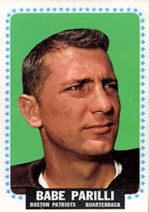 On October 16th against the Oakland Raiders, Babe Parilli threw for 422 yards and four touchdown passes in a 43-43 tie in the most exciting game in the Patriots history at Fenway Park.