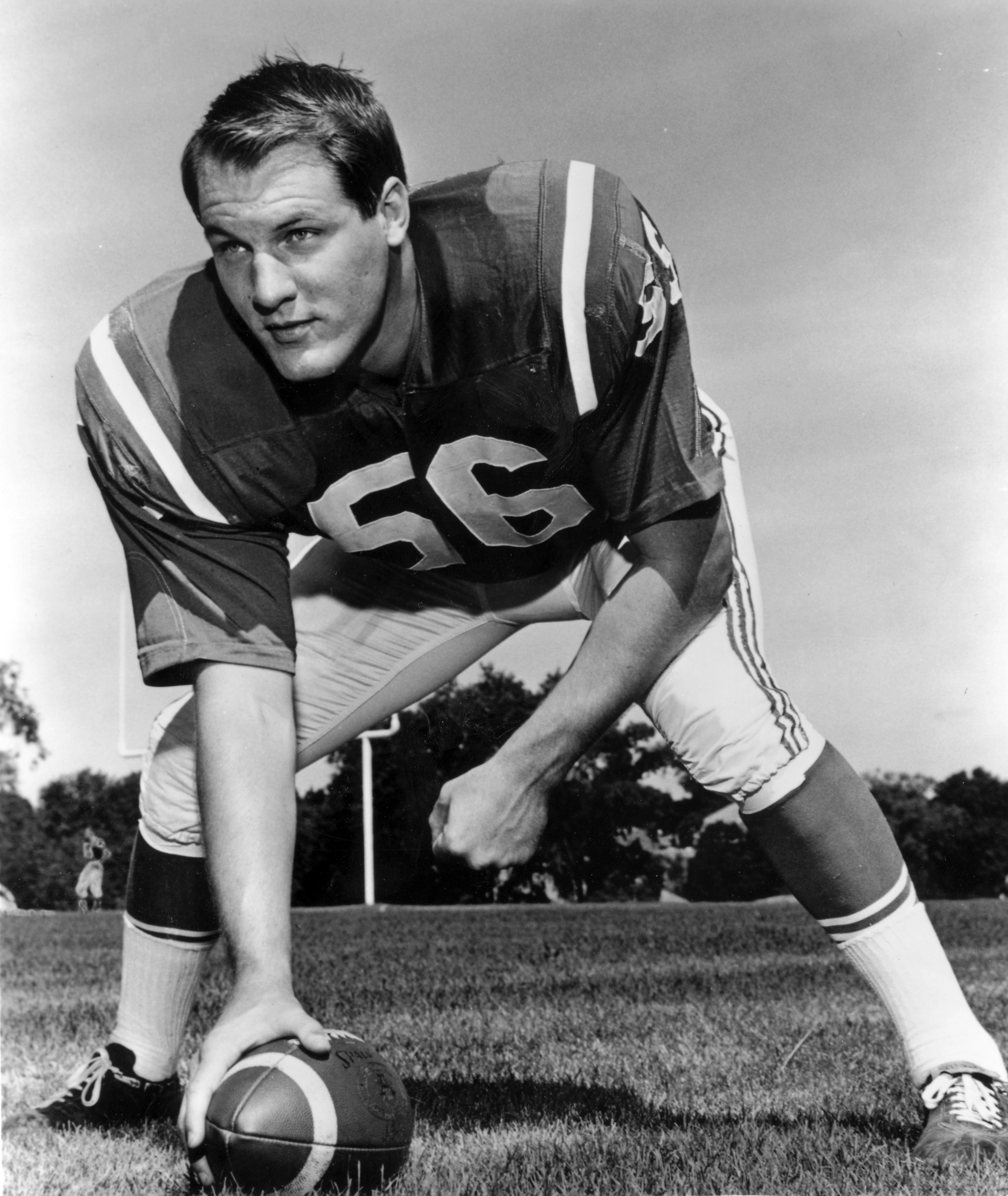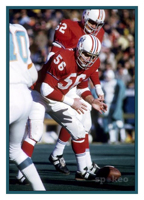 Jon Morris was born on April 5, 1942 in Washington, DC. and was a three-sport athlete in football, basketball and baseball at Gonzaga College High School in Washington, DC. After high school he played center and linebacker for three seasons at Holy Cross, where he was a Holy Cross Varsity Club Athlete of the Year and Lineman of the Year in 1963. He was selected All-East and All-America in his senior year, played in the College All-Star Game and captained the Senior Bowl. The Green Bay Packers, coached by Vince Lombardi, picked Morris as their number two draft choice, however Morris chose to go with the Boston Patriots instead and he was signed on as their third pick. He was the Patriots' team Rookie of the Year in 1964, and their "Unsung Hero" in 1965. He was an AFL All-Star six times, 1964 through 1969, and was an AFC Pro Bowl Center in 1970. He is 2nd to John Hannah for the most appearances by a Patriot player in a League All Star Game or Pro Bowl Game. He played 128 games for the Patriots, the eighth best individual record in club history. Morris recovered several fumbles during his career. The first was a fumble by running back Ron Burton in the Boston Patriots' 24-7 victory over the Kansas City Chiefs at Fenway Park on October 23, 1964. In 1966, he recovered a fumble by running back Larry Garron in the Patriots' 27-27 tie with the Kansas City Chiefs at Municipal Stadium on November 20. He also recovered a fumble by fullback Jim Nance in the Patriots' 16-0 loss to the Houston Oilers at Fenway Park on October 13, 1968. After his playing career, Morris worked as the color commentator on Patriots radio broadcasts from 1979 to 1987, followed by color analysis of NFL games for NBC television. Jon Morris was inducted into the Holy Cross Hall of Fame in 1973. and was named to the second team, All-Time All-AFL Team. He selected Boston Patriots All-1960s Team and selected by a senior selection committee as a member of the Patriots Hall of Fame in 2011.