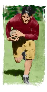 Vic Carroll was born in Alhambra, California on November 9, 1912, attended Alhambra High School. He went on to play basketball and football for The University of Nevada in Reno and led his team to two Far Western Conference titles. Vic played professional football as a center for the Boston Redskins in 1936 and moved with the team to Washington, in 1937. He continued to play with the Redskins thru 1942 and was Pro Bowl selection in 1942. He moved on to play with the New York Giants until 1947. Vic Carroll was elected to the University of Nevada Team of the Century and passed away in Mission Viejo, California on July 6, 1986, at age 73. |