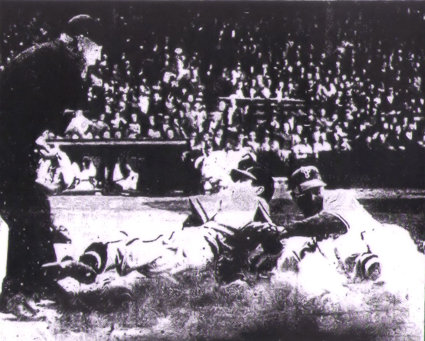 Elliott came up next and fanned on a great knuckleball, that was so baffling
