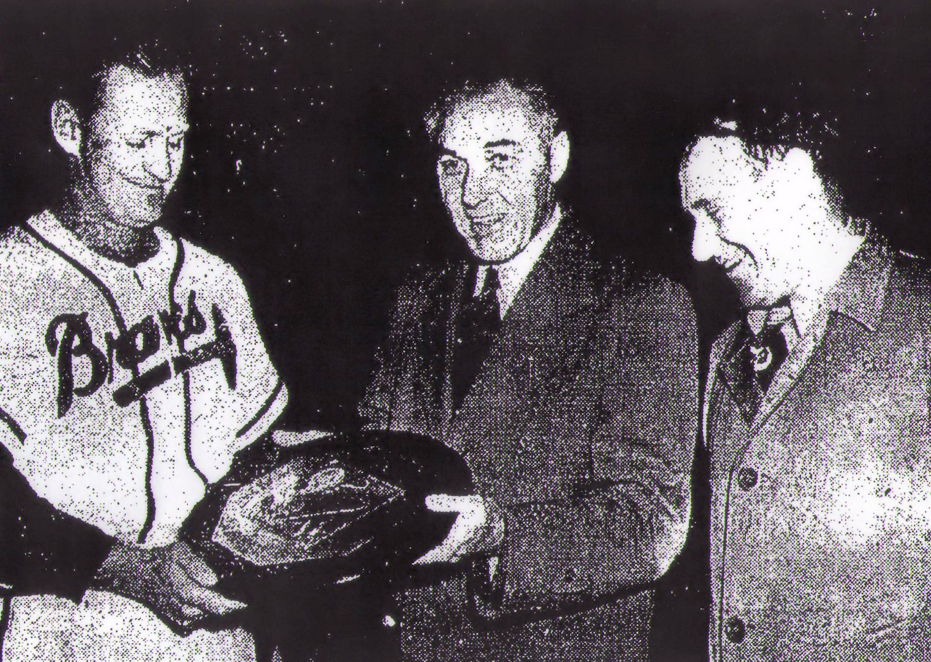 ... May 18, 1948 ... After Bob Elliott had been honored as last year's National League most valuable player before the game, the Pittsburgh Pirates spoiled the homecoming of the Braves by a 4 to 3 score at Braves Field. Elliott received his award and promptly the Braves played a mediocre ballgame, as Bill Voiselle suffered his first defeat of the season after four victories. The big right-hander, who had his winning streak of six games at the end of last year and two more this year on the line, was victimized by Ralph Kiner in the eighth-inning with a mammoth home run, his eighth of the year. Kiner drove the ball half way up the flashy new scoreboard to score Johnny Hopp, erasing a 3 to 2 lead that Voiselle had been handed by Earl Torgeson and Tommy Holmes. Ex-Braves player Max West, also treated Voiselle unkindly with a single, double and a home run, and played first base as though we had an inkling of what was about to take place. His first hit, a single to right, saw him score in the second inning. Danny Murtaugh shot him around third-base with a double to left and Max scored on an infield out. His next trip around the bases was much quicker when he drove a long fly over the bullpen into the pavilion seats for his third round tripper of the year. Another Braves castoff, Elmer Singleton, mowed down the Braves easily for the first five innings, although he was in dangerous territory in the first inning after loading the bases. Earl Torgeson grounded out to West for the final out and killed the rally. Torgeson amended his earlier failure in the sixth inning after Jeff Heath had been given a walk. On a 2-0 pitch, Earl smashed a low liner close to the foul pole that looked as though it would hit the fence, but managed to sail across into the bullpen. That tied the score up at 2 to 2. Tommy Holmes put the Braves ahead opening the seventh inning with a longer drive that never was in question once it left the bat. Singleton promptly was removed and Vic Lombardi, who ended up receiving credit for the victory, was brought in to pitch. Manager Billy Southworth countered by removing both Heath and Holmes from the lineup and bringing in Clint Conaster and Mike McCormick against the left-handed pitcher. The shift backfired over the last couple of innings when the Braves had opportunities to get to Lombardi. Connie Ryan walked to open the eighth and Frank McCormick batting for the relief pitcher Bobby Hogue, flied to center after just missing a double off the left-field wall that landed foul by a few feet. With the Braves down 4 to 3, Bob Elliott walked in the ninth-inning with one out after having gone 0 for 4. But Conaster was only able to pop out and Torgeson grounded out to end the game. Bob Elliott received his award with the players from both teams gathered around home plate, a few minutes after the tarp had been removed from the field. It was given to him by Ford Frick, the president of the National League. Naturally, Elliott called it the biggest thrill of his career and even more so because it was his first year in a Braves uniform. The plaque at a profile of the late commissioner, Judge Kenesaw Mountain Landis engraved on it. |