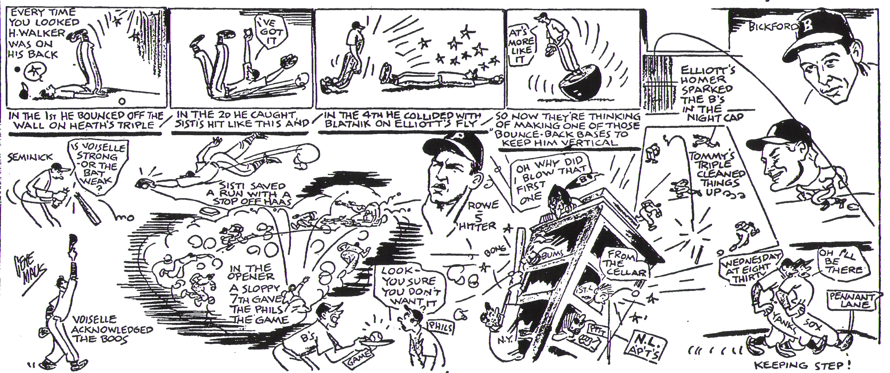 Bama Rowell on Earl Torgeson's grounder, and Jeff Heath's triple off the