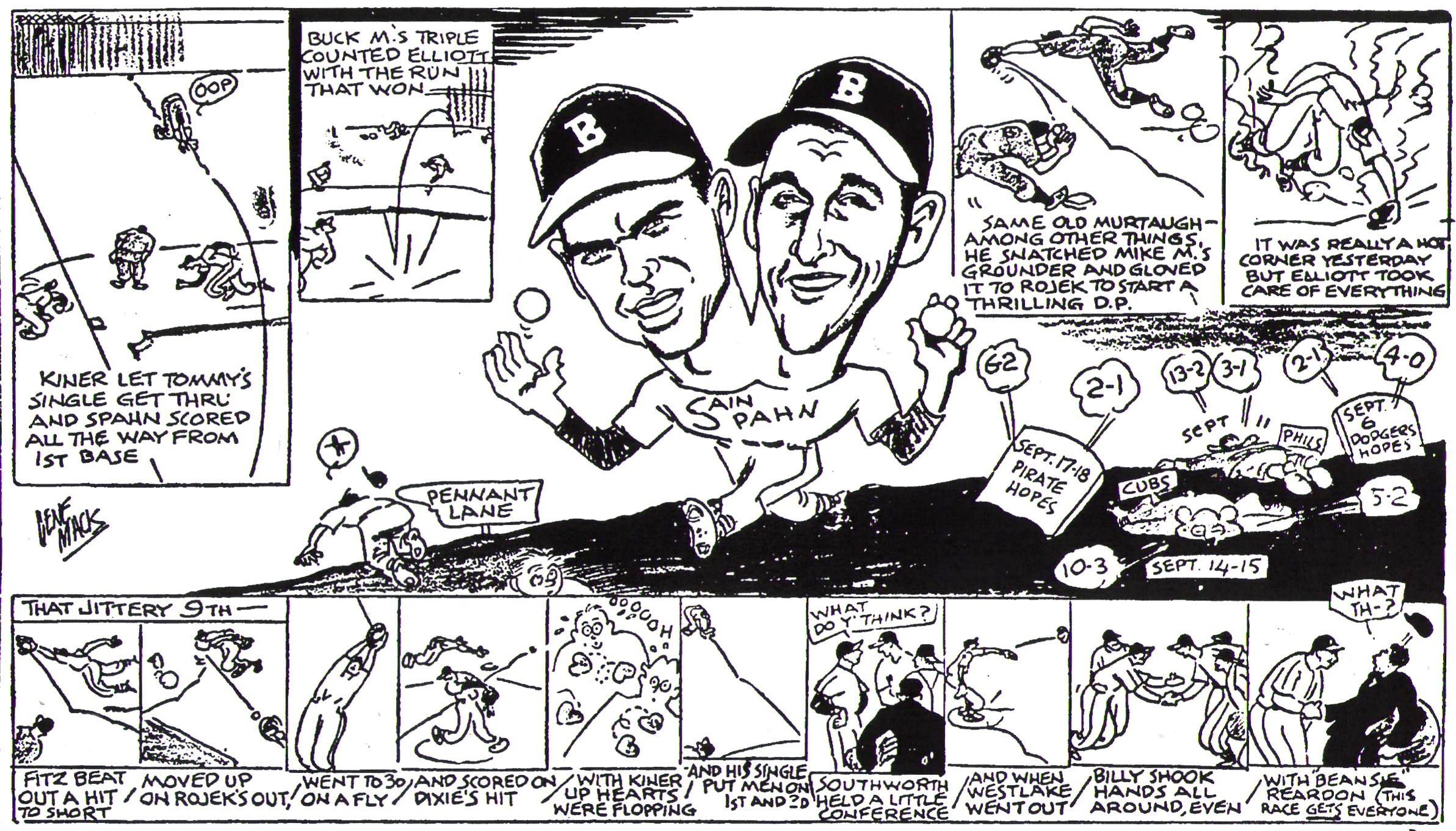 then got three hits before Wally Westlake topped an easy ground back to Spahn