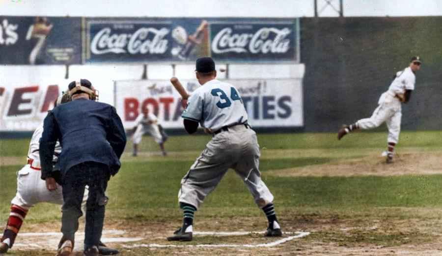 Boudreau slipped up behind him at the same time Feller fired the ball to second