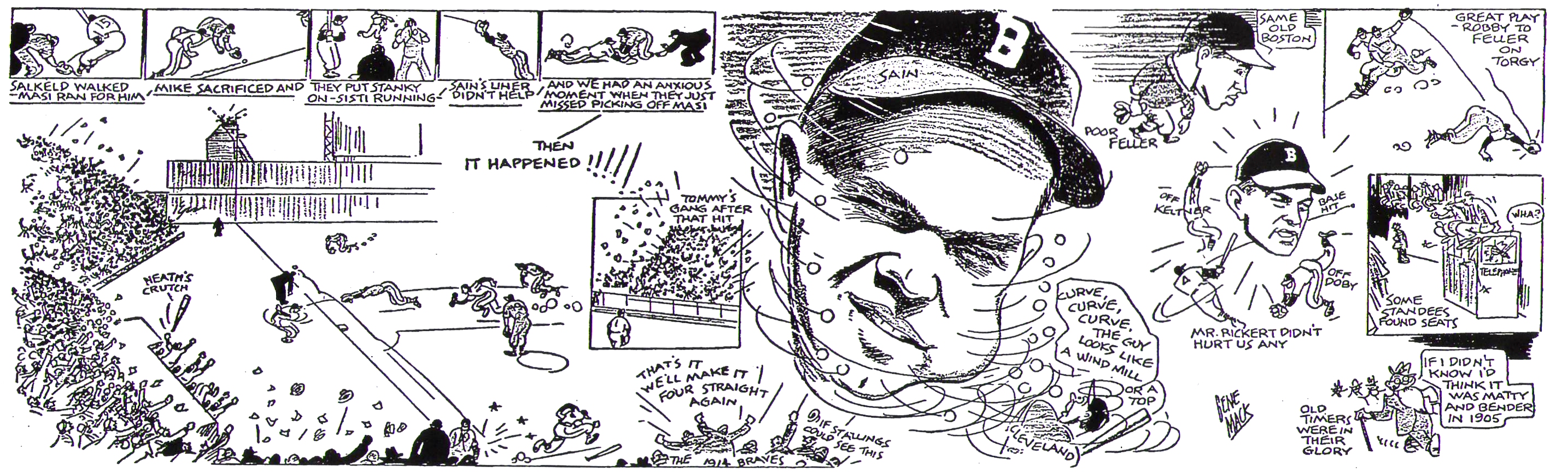 pinch run for Stanky. Up to the plate came Johnny Sain, a good hitting pitcher.