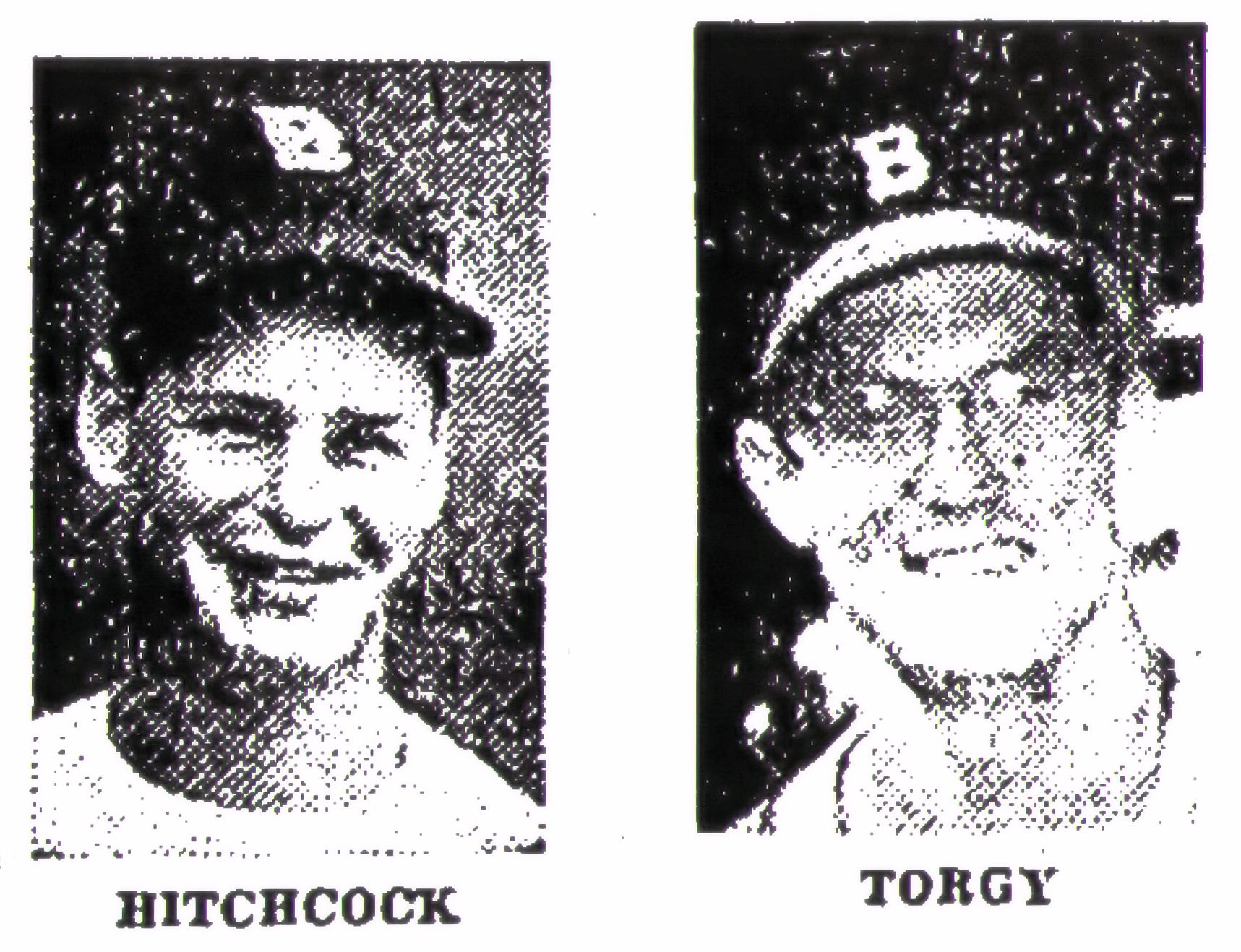 Hitchcock, making his first Red Sox appearance, was pinch hitting for Joe Dobson. Sam Mele had doubled and was on second base when Hitchcock grounded one back to pitcher Ed Wright. Wright had Mele caught between second and third when Alvin Dark tagged him out. When Hitchcock rounded first, a quick throw was made by Torgeson. The ball hit Hitchcock as he slid back to first and bounded away some 15 feet beyond the bag near the box seats. Torgeson started to retrieve it and hold Hitchcock on first. But Hitchcock wasn't going anywhere as he soon proved. He grabbed Torgeson's legs as the firstbaseman started chasing the ball. Torgeson stumbled and started again and Hitchcock yanked at his leg one more time. Torgeson at that point dropped his glove and started for Hitchcock. As Hitchcock got up Torgeson let fly a left-handed punch that caught him on the chin.