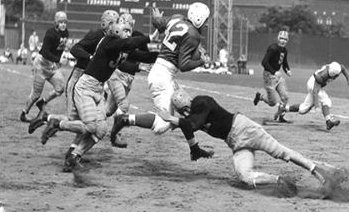 BOSTON'S NFL EAST CHAMPS September 13, 1936 ... The Boston Redskins opened the National League professional football season today under a wilting summer sun by losing 10-0 to the Pittsburgh Pirates. George Kakasic, a substitute left guard and kicker accounted for nine of Pittsburgh’s points. Kakasic scooped up Ed Smith’s fumble on the Redskins’ 26 near the end of the half and ran it in for the only touchdown of the game. He accounted for three more points with a field goal, in the final quarter after the Pirate attack stalled on the Redskins 22 yard line. |