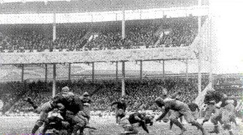 The Redskins beat the Giants to advance to NFL Championship December 6, 1936 ... Still sporting Boston feathers, although they may never again inhabit Tom Yawkey’s wigwam, the Redskins slithered to a convincing 14-0 victory over the New York Giants in a cold drizzle, and clinching the right to meet the Packers for the NFL championship. Statistics gave the Giants the edge, but things like extra effort and hustle aren’t statistical categories, and the Redskins won that battle. A 38 yard drive and a 75 yard punt return by Cliff Battles produced the only scores. The Giants crossed midfield only twice in the first three periods. Boston’s gargantuan tackle, Turk Edwards had a great day, partially blocking two punts, recovering two Giant fumbles in New York territory and just gave an all-around outstanding effort. Battles earned his share of the honors with the longest touchdown run of the season, and was his usually slippery self. Between the tackles. Wayne Milner displayed his “All American” form at end, and Bull Irwin contributed some vicious plunges for valuable yards. Darkness set in early, and most of the second half was played under floodlights. |
