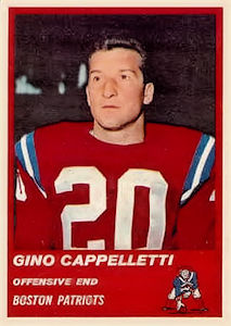New York bounced right back however, as Dick Wood connecting with Bake Turner for a 53 yard strike. Just before the half, the Patriots came back with a 70 yard march that resulted in three points by Gino Cappelletti from 22 yards making the score 21-10 at the half. In the third quarter after Dick Guessman hit a field goal for the Jets, d-back, Tony Stricker latched on to the Jets’ fifth interception and took it down to the Boston 15. Wood combined with Maynard to make it 31-10. Now the Patriots put on a fantastic finish that just fell short. Trailing 31-10 in the fourth quarter, they came across with two touchdowns and came within 10 yards of tying the score. They first scored in the fourth with Jimmy Colclough grabbing a touchdown pass from the 15. When they got the ball back, Tom Yewcic hit Art Graham with a 57 yard long bomb for another touchdown. Down by only seven points now, Yewcic, who played almost the entire game for Parilli, then hit Larry Garron and Jim Colclough with successive passes, that brought the ball down to the New York 10 yard line, when time ran out. Dick Wood was the sharpshooter for the Jets, pitching three touchdowns. Two were to Don Maynard and one to Bake Turner. Tom Yewcic fired three touchdown passes to Art Graham twice and to Jim Colclough once. |