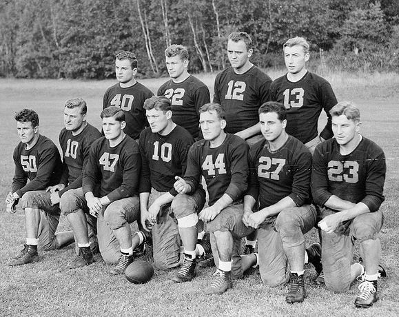 December 15, 1940 ... After two weeks of tributes and parties, the Eagles got back to work. Beyond doing some physical conditioning, the field conditions made scrimmaging against the freshmen an impossibility. The varsity did little more than review assignments in a dummy scrimmage. The team will leave Wednesday and reach their destination in New Orleans on Friday. Gene Goodreault's knee is still questionable, but his replacement, sophomore Don Currivan proved to be an able replacement. Mike Holovak still has his leg wrapped and Joe Zabilski is still nursing his elbow injury.