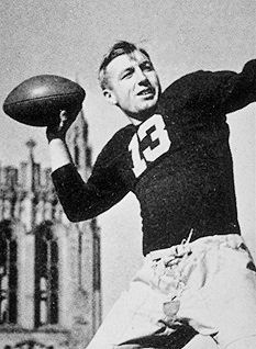 The Eagle had wounded wings at this point, but the Eagle was still flying as Charlie O’Rourke struck back. Georgetown held the lead through the first period at 10 to 6. Then Boston College swing back to set the pace in the second period at 13 to 10 as