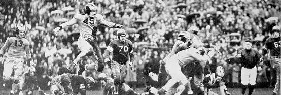 November 11, 1938 ... The undefeated Boston College Eagles staged two touchdown marches in the first period and scored again in the final period on a long pass by Charlie O'Rourke.  But they were given a few jittery moments in the closing minutes of play when the B.U. passing attack produced a pair of spectacular touchdowns but fell short of overcoming the Eagles in a 21-14 win.  Until then, B.U. was unable to make any headway against the Eagles' heavy forward wall. But a spark ignited the Terriers in the final eight minutes and on sheer inspiration they were able to make the final count a lot closer than it should have been.