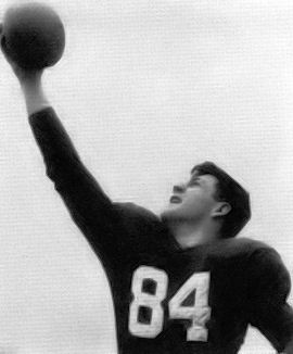 November 17, 1951 ... Harry Agganis piloted the B. U. Terriers past Wichita at Fenway Park as freshman Tom Gastall intercepted three passes. Agganis did what he pleased it seemed, as the first time he touched the ball he moved the team to a touchdown on the second play of the game. As a matter of fact, he completed five passes for 105 yards on the Terriers' first five plays and ran for five yards on the sixth play. After he warmed up his pitching arm, he saw that his receivers were not having trouble and the offense exploded. B.U.'s 39 points ran the team's total to 280 for the years, setting a new team record. The first touchdown was Agganis' only scoring throw, his 11th touchdown pass of the year. The B.U. quarterbacks total amount of yards in the air (13 for 23 netting 187 yards) was more than the total Wichita offensive production. Wichita's lone score came at the end of the first half with B.U. leading 19-0. |
