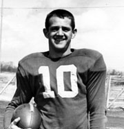 November 15, 1952 ... Deadlocked 7-7 with less than four minutes left in the game, Boston University refused three points and was fortunate to come back with a touchdown as the final period ticked away at Fenway Park. The Terriers were lethargic and uninspiring and almost wound up in a tie with their less than formidable opponent. Titus Plomeritis broke the stalemate with a 14-yard field goal in the waning moments, but there was an N.Y.U. offside penalty. Taking the penalty would give the Terriers a first down on the one yard line. Coach Buff Donelli decided to accept the penalty but the first play resulted in a penalty on B.U. An illegal shift put the ball back 15 yards to the 16-yd line. Sophomore Phil O'Connell hit Tom Lavery with a 15-yard pass on second down to put the ball back on the 1-yd line, where Mario Mauriello banged it home. Plomeritis banged home the extra point and the game was won, 14-7 as time ran out. Harry Agganis and many of seniors sat out the finale. |